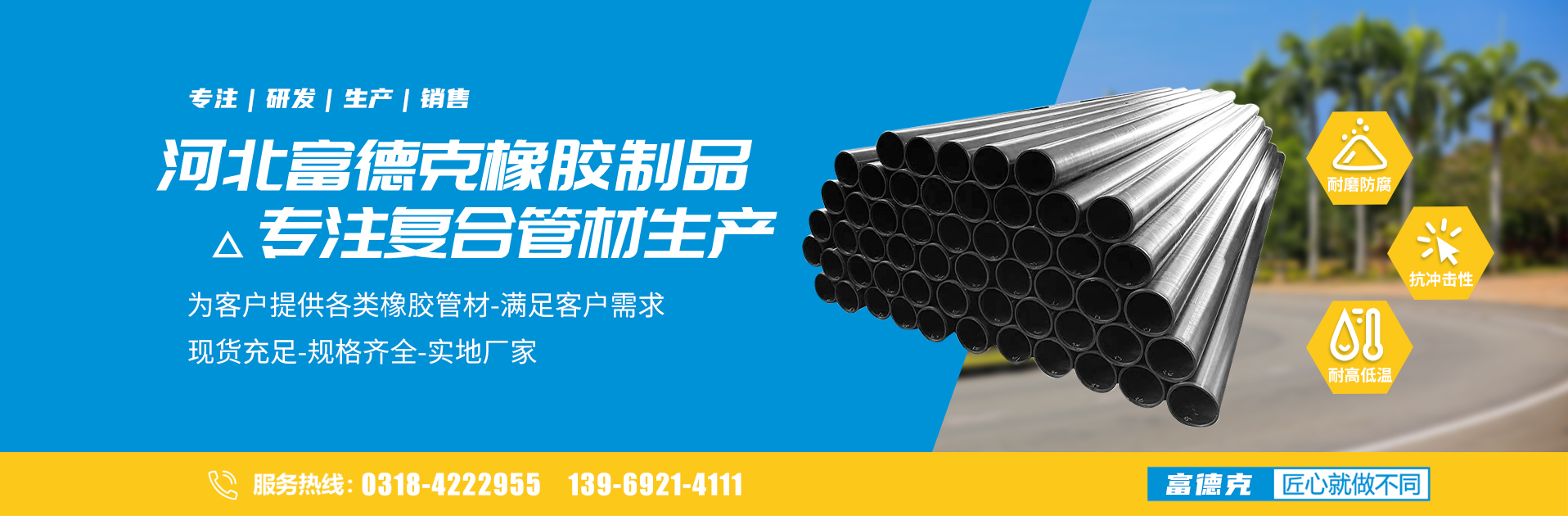 河北富德克橡膠制品有限公司,始建于2013年,座落于千年古城--河北景縣城南開發區,公司占地面積3.8萬平,注冊資金6200萬,廠區公司成立以來專注于鋼骨架聚乙烯復合管設備研發及管材的生產,現有員工228名,其中高級工程師3名,中級工程師10名,技術人員18名,年產值達1.2億。公司專業生產鋼骨架聚乙烯復合管、HDPE雙壁波紋管、PE鋼塑復合管、配套管件、液壓軟管、輸水膠管、金屬軟管、膨脹節、補償器、橡膠接頭、金屬接頭、管件、輸送機械及配件、穿線管、四氟產品、復合軟管、濾芯、礦山配件、止水材料、···